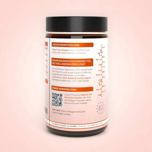 Our joint collagen is of uncompromising product quality and is produced exclusively in Germany and tested for purity in the laboratory. We deliberately avoid additives, preservatives, colourings, sweeteners and artificial flavourings.